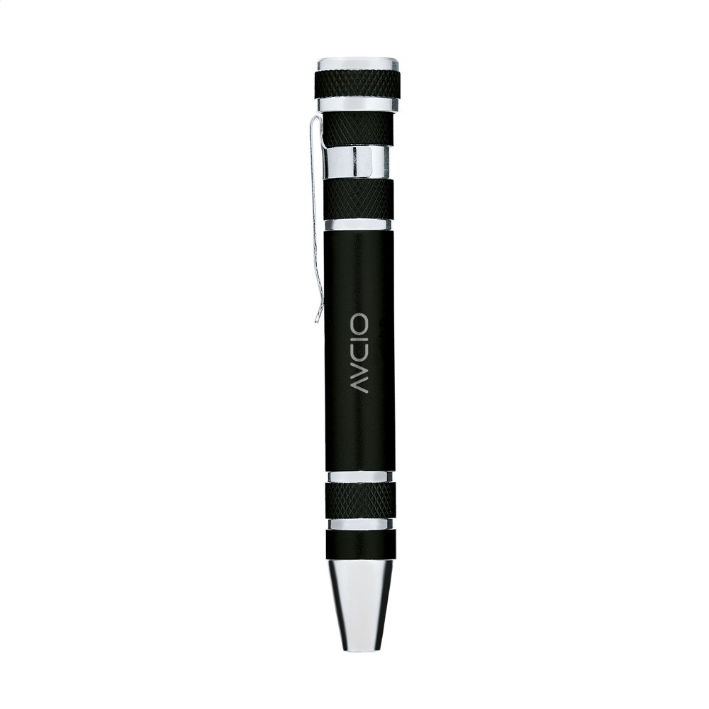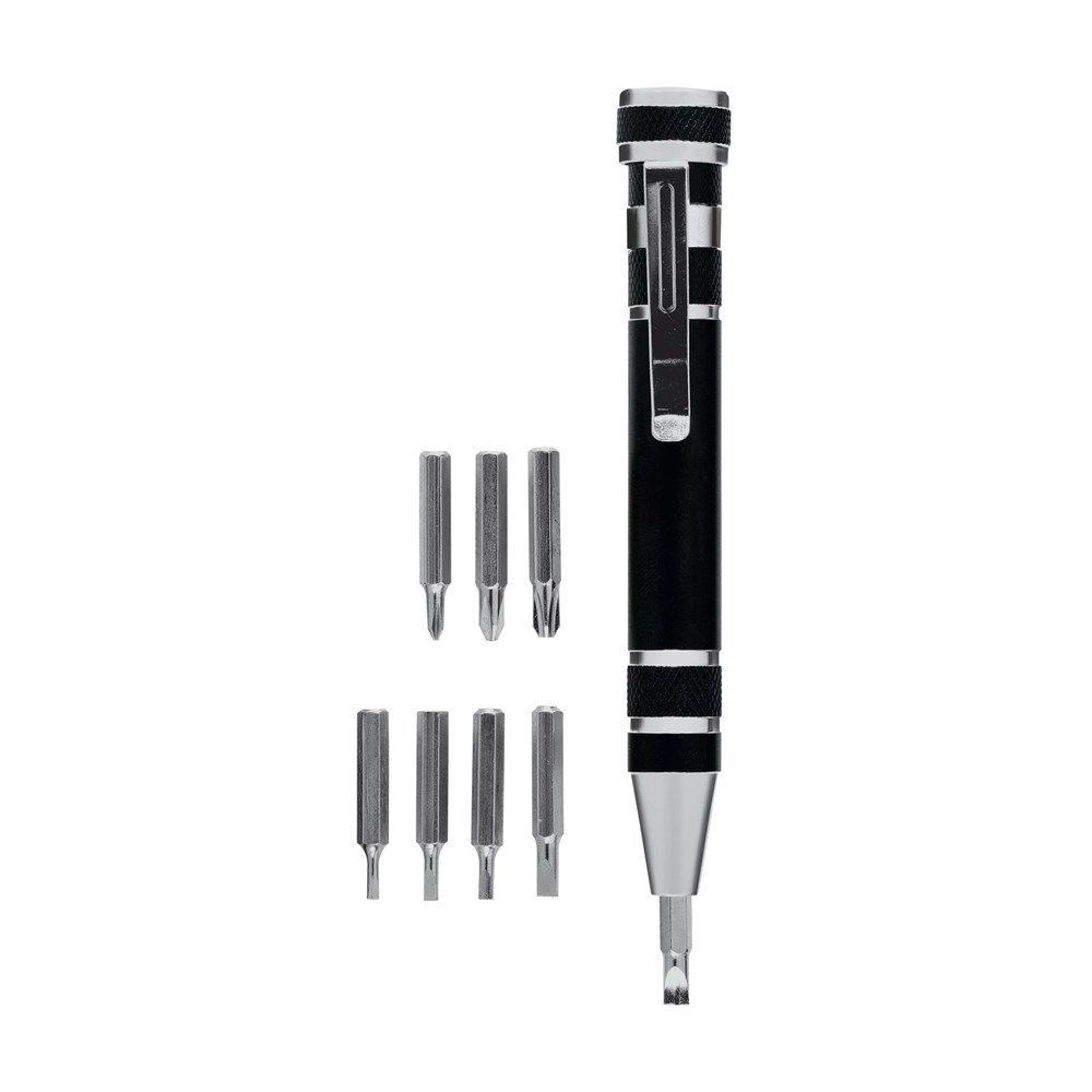 Aluminiumstift in Metalloptik mit stabilem Clip und 8 Bits: CRV1.5 - CRV2.0 - CRV3.0 - CRV3.5 - PH000 - PH0 - PH1 - PH2. Verpackt pro Stück.