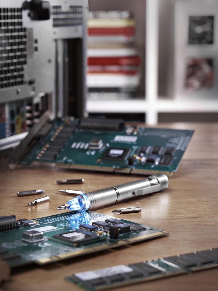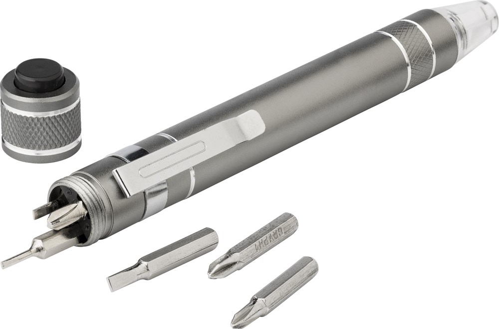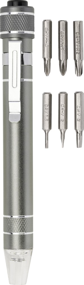 Bit-Set aus Aluminium mit 6 Biteinsätzen und LED-Lampe. mehr