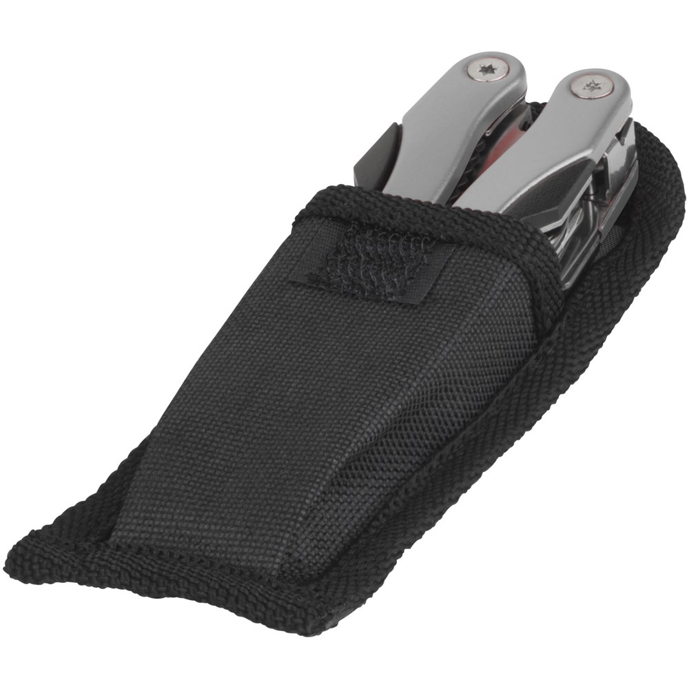 Kompaktes Multifunktionswerkzeug mit 11 Funktionen und Nylontasche.