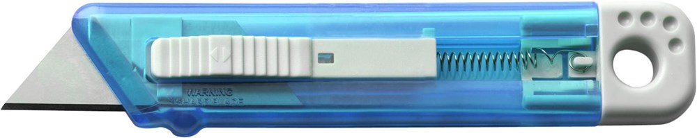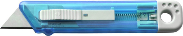 Cuttermesser aus Kunststoff mit Federkernautomatik, transparent, gefrostet.