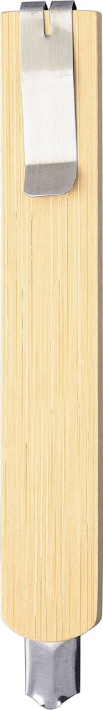 Metallmesser mit Bambuskörper. Verfügt über einen Metallclip auf der Rückseite, um das Messer zu... mehr