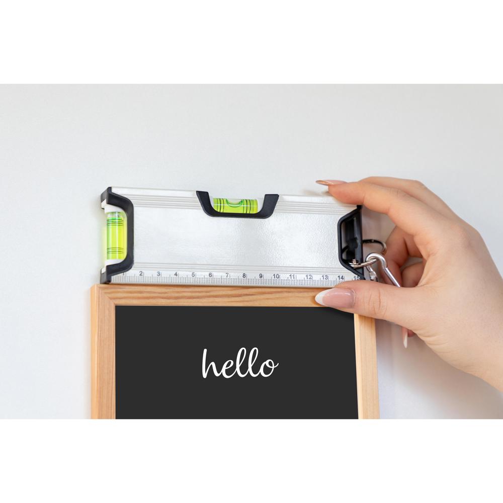 Die Wasserwaage "Misura" ist das ideale Werkzeug für präzise Messungen und vielseitige Einsatzmöglichkeiten. Gefertigt aus langlebigem Aluminium, bietet sie Robustheit bei einer handlichen Größe von 15,5 x 1,7 x 5,2 cm. Die gelbe Flüssigkeit sorgt für eine klare und gut ablesbare Anzeige. Dank der magnetischen Funktion kann die Wasserwaage problemlos an Metallflächen befestigt werden. Der integrierte Karabinerhaken ermöglicht ein einfaches Mitführen, während die zusätzlichen Maßangaben das Werkzeug zu einem unverzichtbaren Begleiter für alle Bau- und Handwerksprojekte machen.