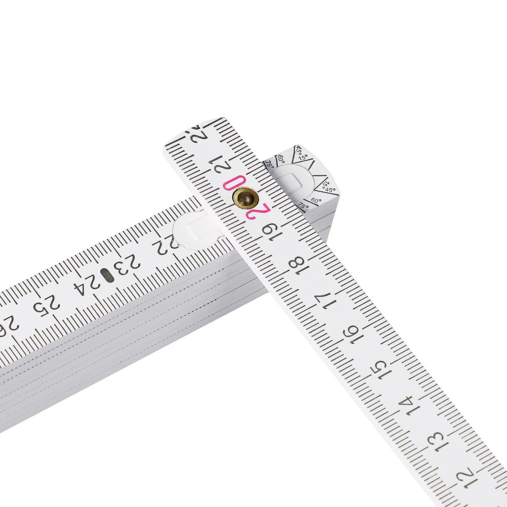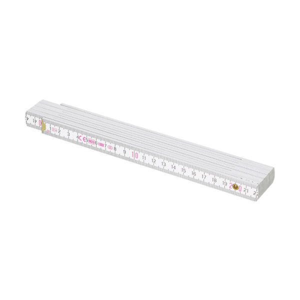 Hochwertiger weißer Glieder-Maßstab aus Buchenholz. Hohe Qualität durch Kunststoff-Gelenke und sichtbare Nieten. Länge: 2 m