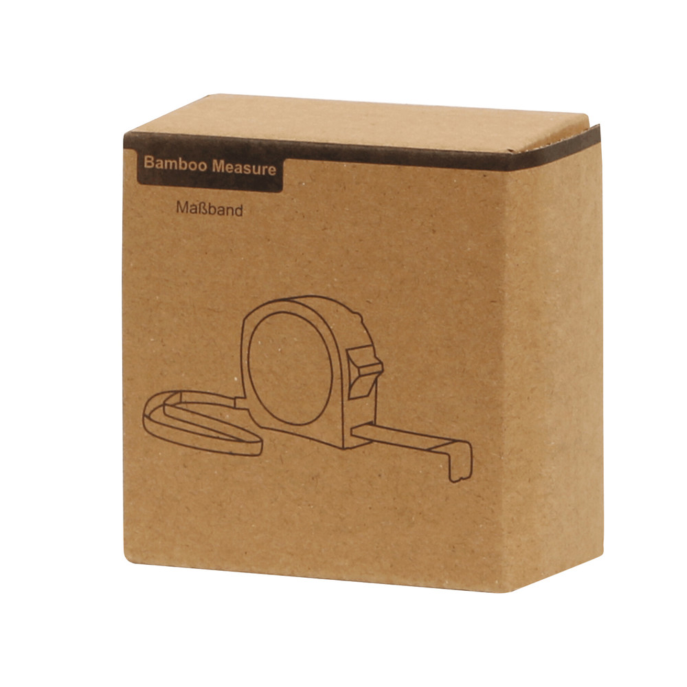 Maßband BAMBOO MEASURE: Automatik mit Feststeller, praktischer Befestigungsclip auf der Rückseite, mit Trageschlaufe, Bambus-Platte für die Werbeanbringung, 3 m, in Box