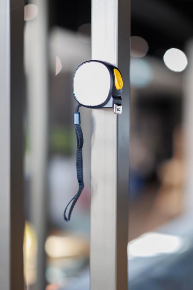ABS-Bandmaß mit magnetischer Seite zur einfachen Befestigung an Metalloberflächen. Das 19 mm breite Metallband mit 5 Metern Länge zeigt sowohl Zentimeter als auch Zoll an. Mit Druckknopf auf der Oberseite zum Feststellen und Lösen sowie Polyester-Handschlaufe. Einzeln verpackt in einem braunen Karton mit Abbildung.