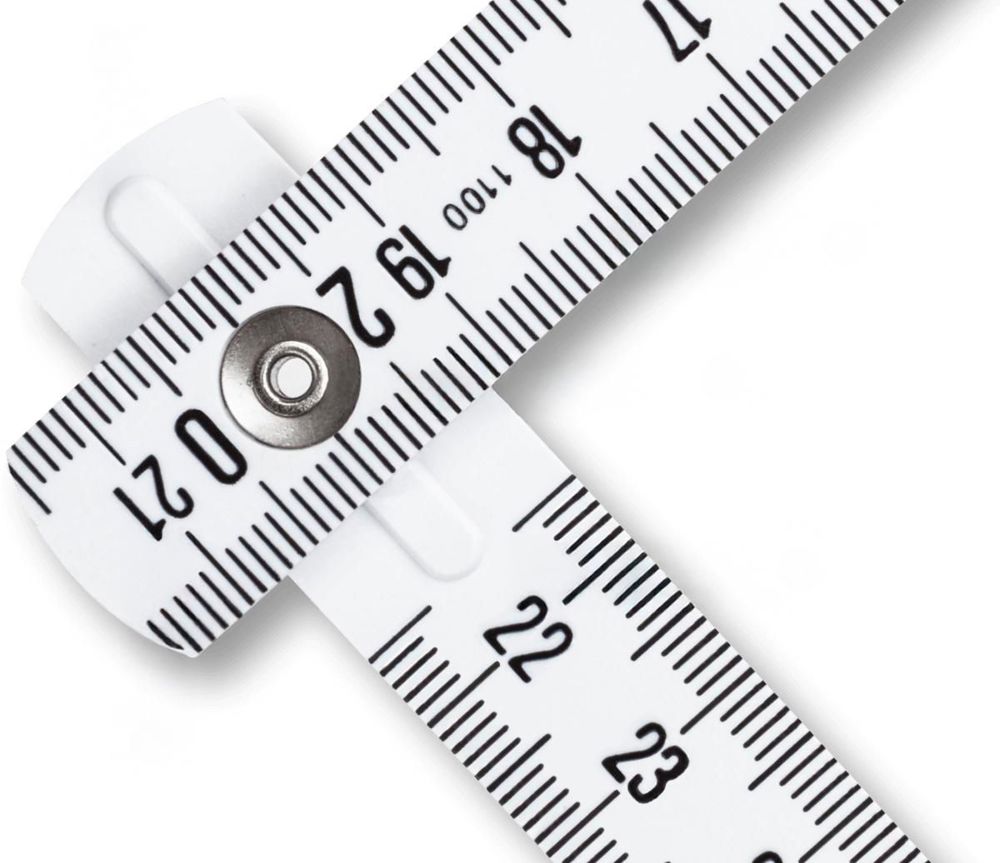 Faltbarer Zollstock aus ABS von Stabila mit einer Gesamtlänge von 2 Metern. Die Skala ist in cm. Das Lineal hat eine harte, stoßfeste Beschichtung. Verfügt über ein eingebautes Winkelschema und eine Linealfunktion. Genauigkeitsklasse 3.