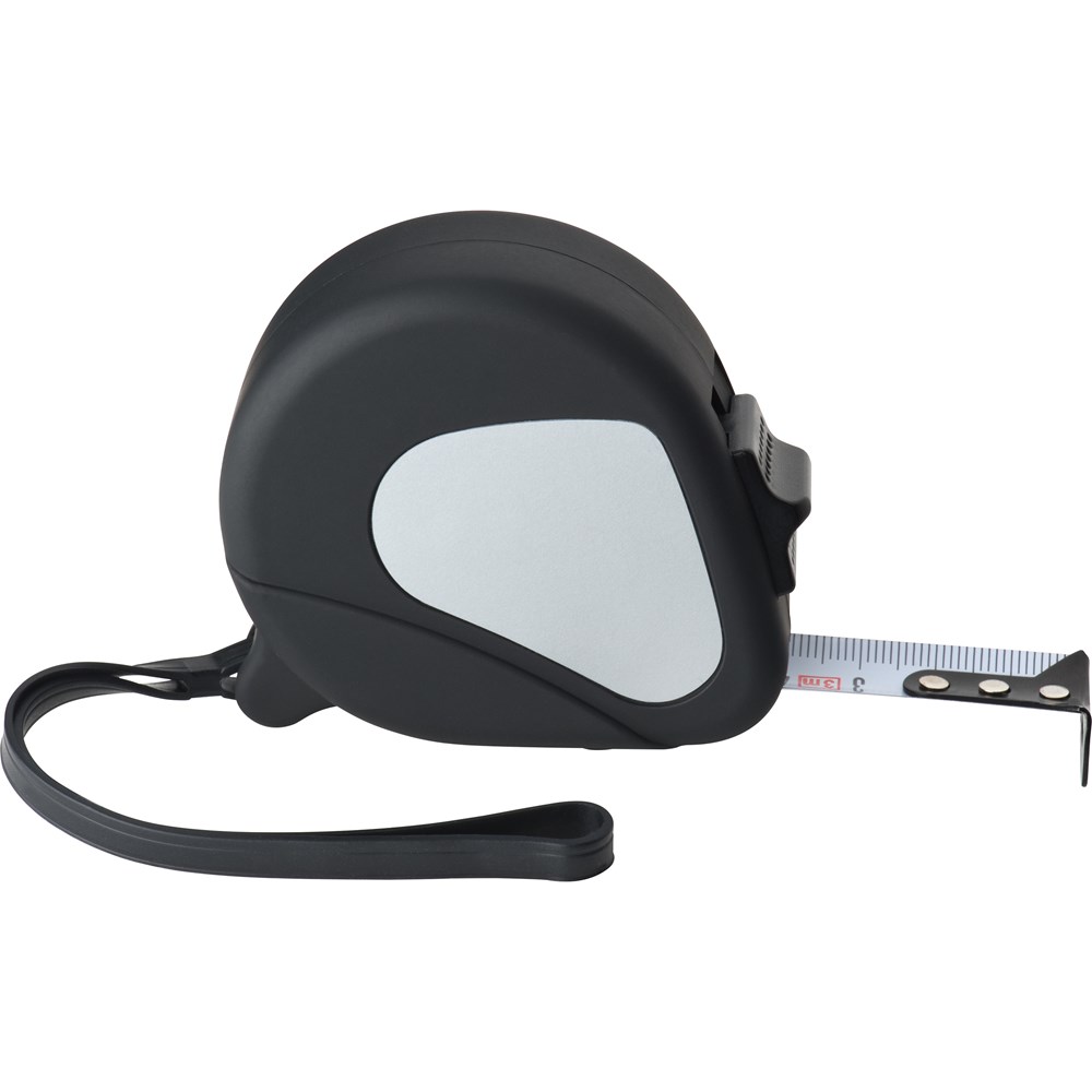 Stahlmaßband mit einer Messlänge von 3 Metern, Feststellschieber, Schnellfesthaltetaste und Handschlaufe. Für eine besonders angenehme Haptik sorgt das rubber finish. Ihre Werbung drucken wir auf das silberne Emblem.