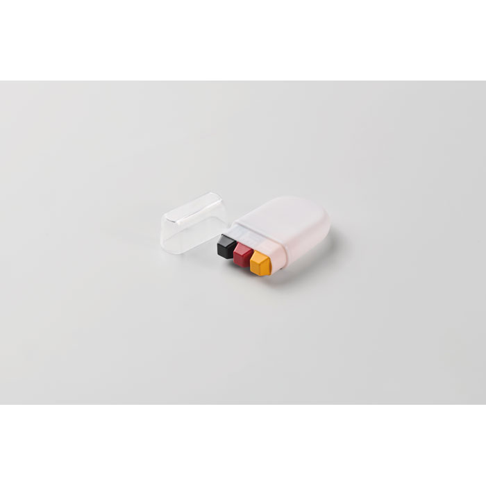 Fan Schminkstift in verschiedenen Flaggen-Farben. Wachsfarbe in PP-Gehäuse mit PS-Deckel.