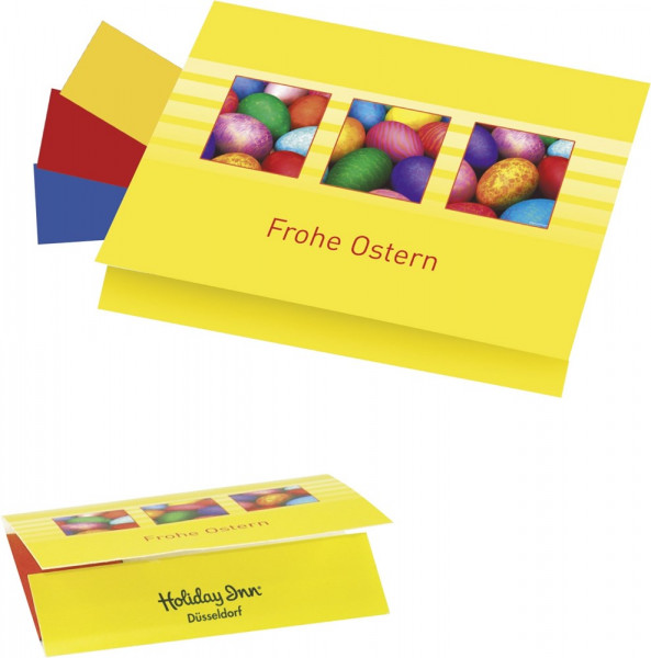Klappkärtchen Eierfärberei 90 x 60 mm, 3 Farben sortiert, inkl. Digitaldruck 1-4/0 c