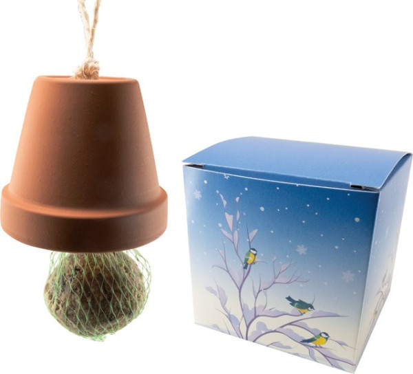 Inhalt: Tontopf Ø 9 cm, Meisenknödel, Hanfschnur