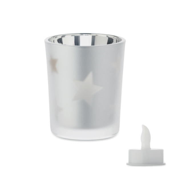 Glashalter mit LED-Teelicht. Inkl. 1 CR2032 Knopfzellbatterie.