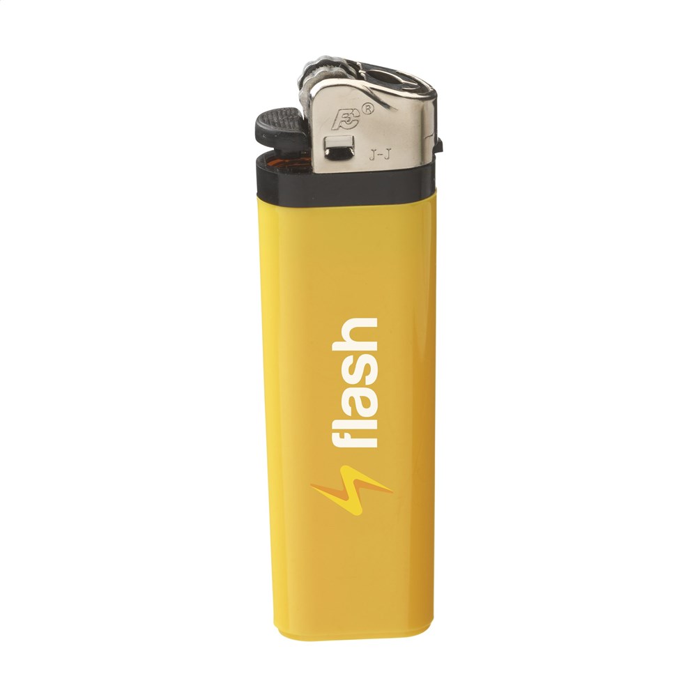 Qualitätsfeuerzeug der Marke Flameclub® mit Flammenregler. Mit Kindersicherung. NEN-zertifiziert: EN13869. TÜV-zertifiziert und ISO-zertifiziert: ISO9994. Feuerzeug wird nur mit Aufdruck geliefert.