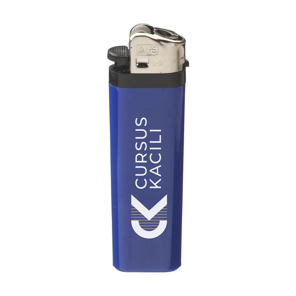 Qualitätsfeuerzeug der Marke Flameclub® mit Flammenregler. Mit Kindersicherung. NEN-zertifiziert: EN13869. TÜV-zertifiziert und ISO-zertifiziert: ISO9994. Feuerzeug wird nur mit Aufdruck geliefert.