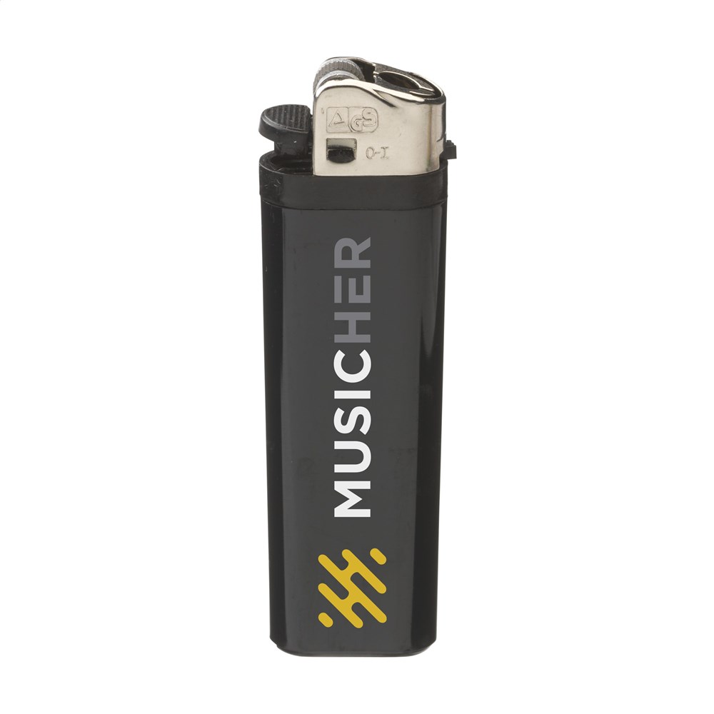 Qualitätsfeuerzeug der Marke Flameclub® mit Flammenregler. Mit Kindersicherung. NEN-zertifiziert: EN13869. TÜV-zertifiziert und ISO-zertifiziert: ISO9994. Feuerzeug wird nur mit Aufdruck geliefert.
