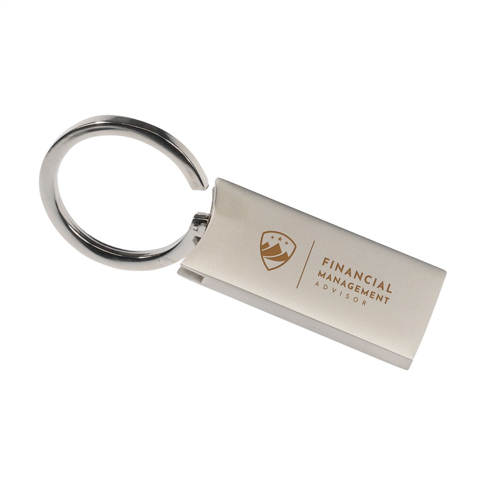 Mattmetallener Schlüsselanhänger mit stabilem Sicherheitsring mit Klicksystem. Verpackt pro Stück.