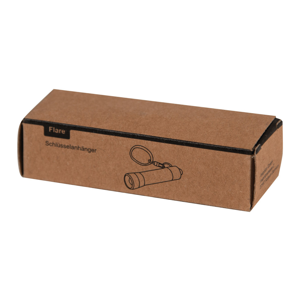 Schlüsselanhänger FLARE: lichtstarke LED-Taschenlampe, gummierter An- und Ausschalter, mit Schlüsselring, batteriebetrieben (4x LR44 Knopfzellen enthalten), in Box