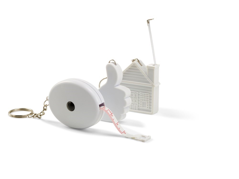 Maßband aus Kunststoff, mit Metall-Schlüsselring, Messbereich ca. 2 m. mehr