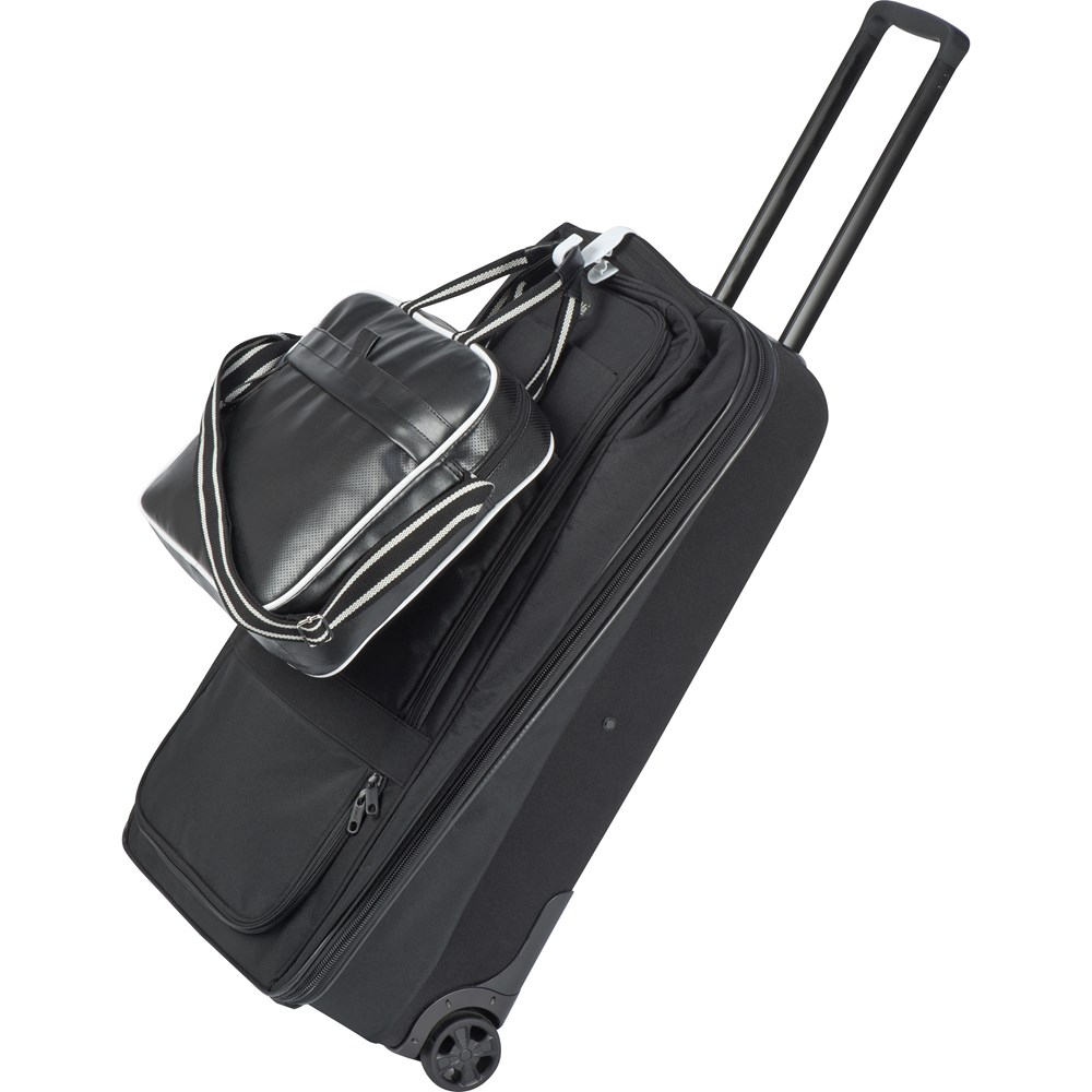 Einfache Befestigung: Unser Taschenhalter lässt sich spielend leicht an den Griff Ihres Trolleys anbringen. So haben Sie im Handumdrehen mehr Stauraum für Ihre zusätzlichen Taschen und Beutel.
