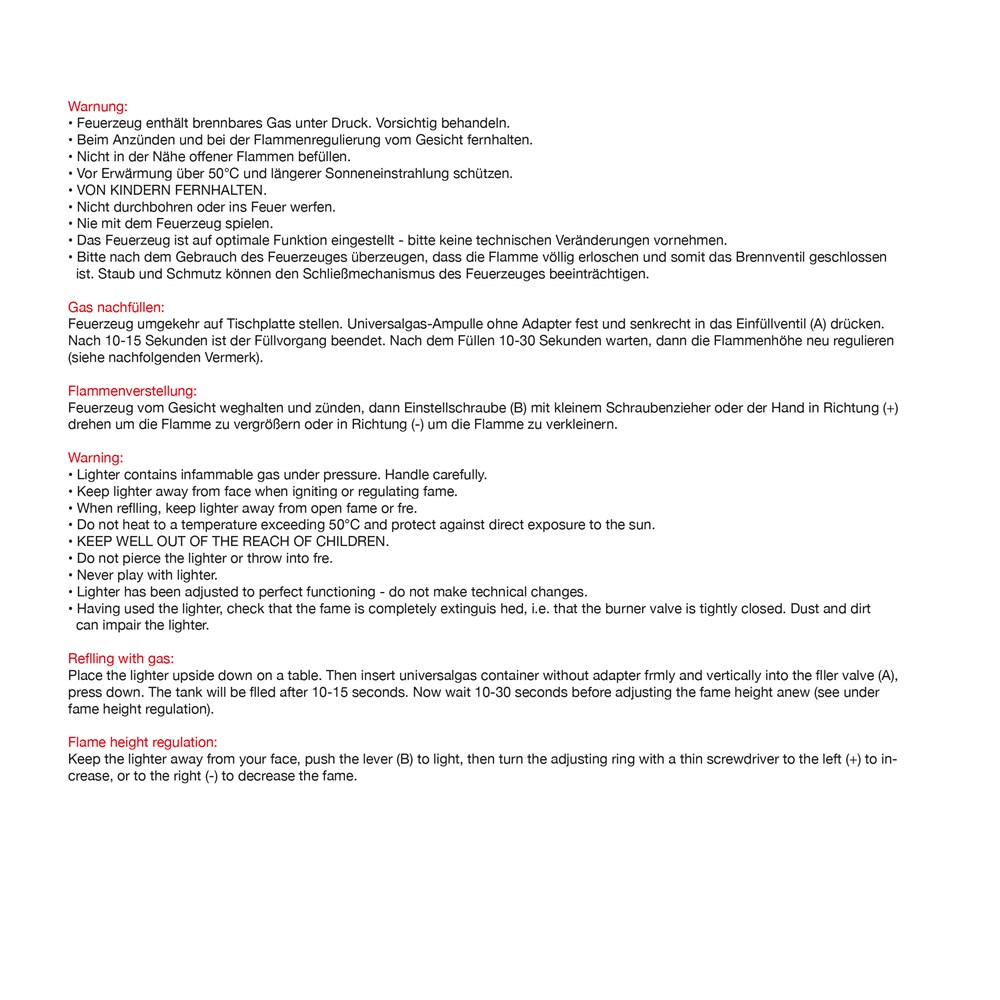 Nachfüllbar: Im Gegensatz zu Einwegfeuerzeugen ist dieses Feuerzeug nachfüllbar, was es langlebig und praktisch macht.