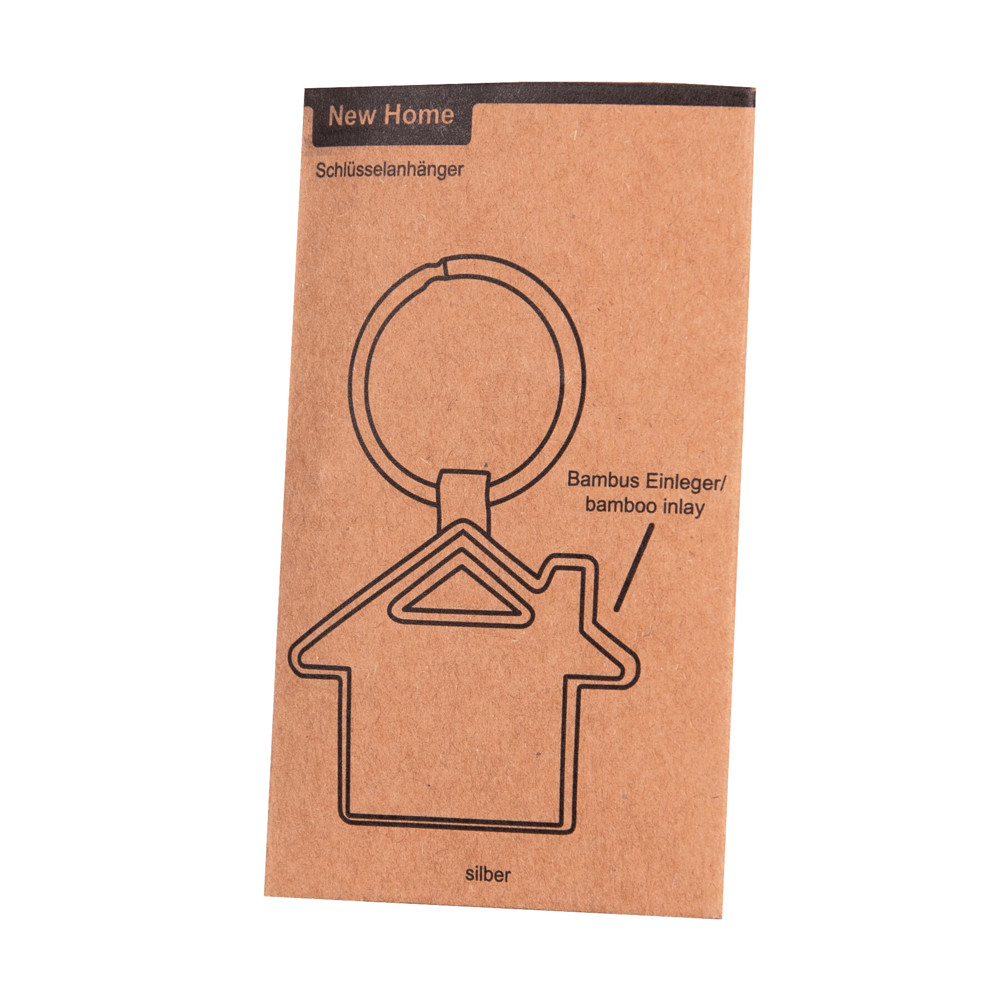 Schlüsselanhänger NEW HOME: Metall-Hausform mit Bambus-Einsatz, mit Schlüsselring