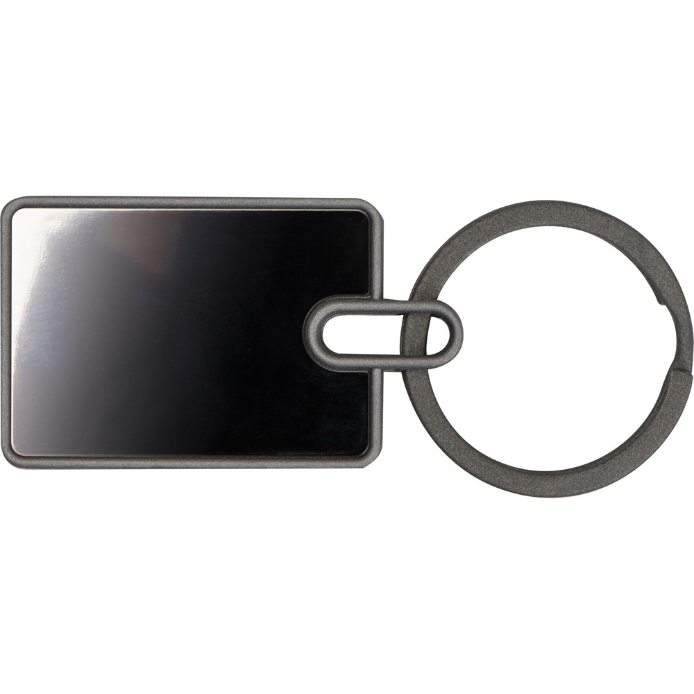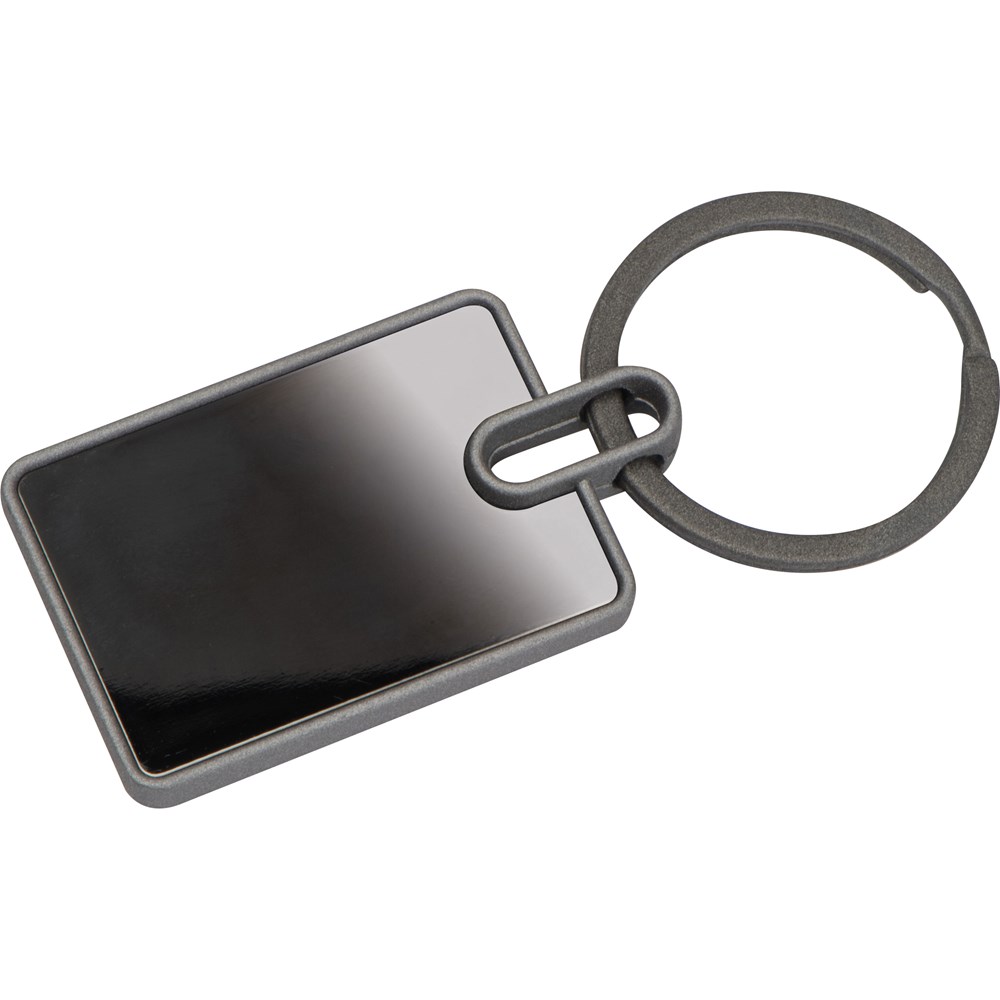 Hochwertiger Schlüsselanhänger aus Edelstahl. Seine besondere Optik erhält er durch das verspiegelte dunkle Mittelstück, die matte Umrandung und den matten Schlüsselring .Ihre Werbung bringen wir mittels einer Lasergravur auf einer Seite an.