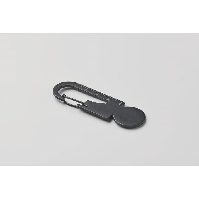 Multifunktionaler Einkaufswagenchip aus recyceltem Edelstahl ( 90% recycelter Edelstahl und 10% Edelstahl). Inkl. Kapselheber, Lineal und Sechskantschlüssel 5 ,5mm, 7mm und 8mm.