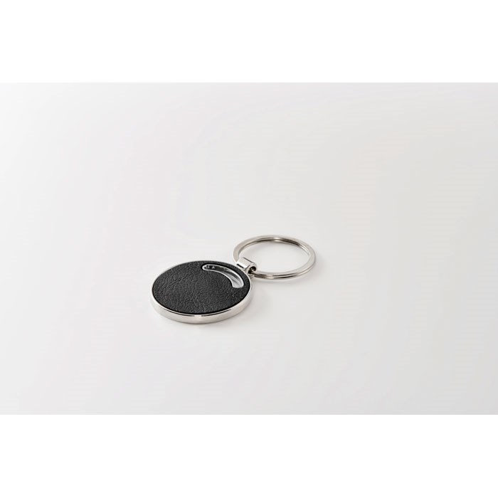 Schlüsselring mit rundem Anhänger. Metall mit Einlage aus recyceltem PU.