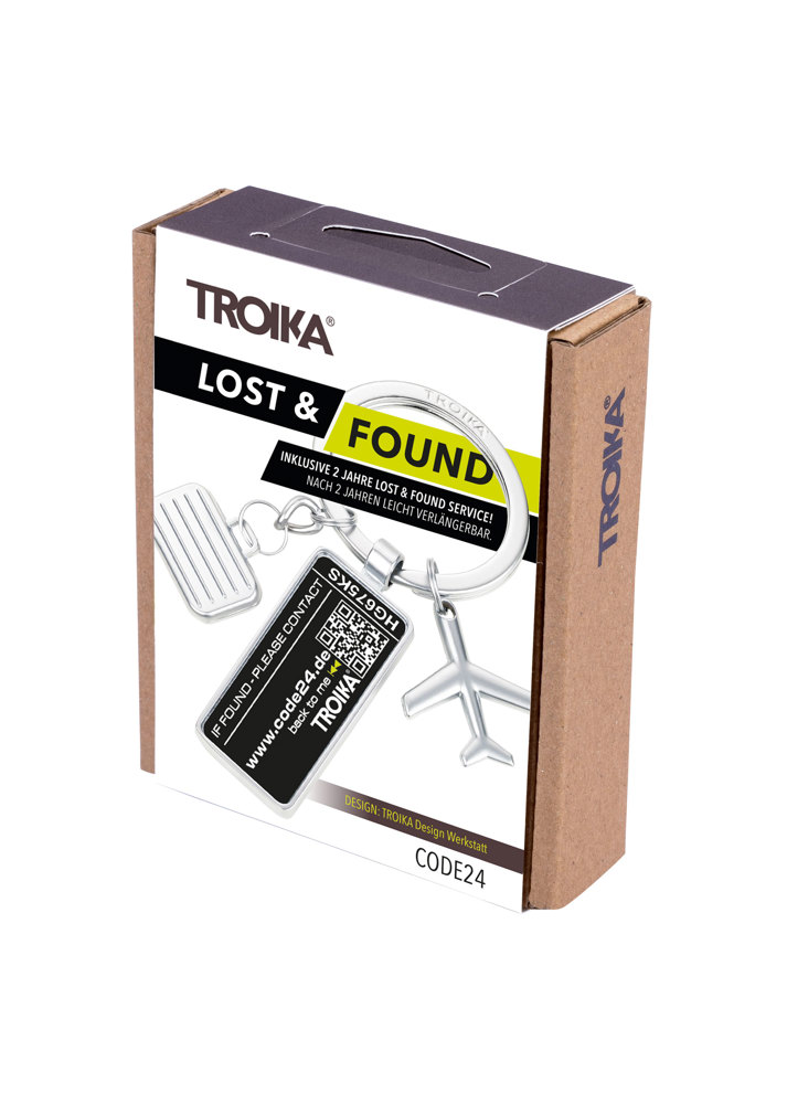 Schlüsselanhänger mit Lost and Found Service, 3 Charms: Flugzeug, Koffer und Plakette, Inklusive... mehr