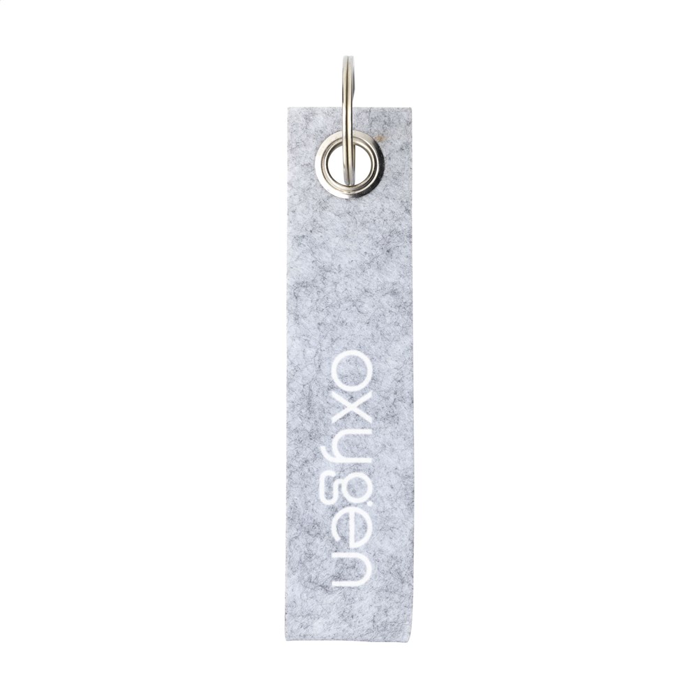 Schlüsselanhänger aus RPET-Filz. Dieser Filz wird aus recycelten PET-Flaschen und recycelten Textilien hergestellt. Ausgestattet mit einem robusten Schlüsselring. GRS-zertifiziert. Recyceltes Material insgesamt: 60%.