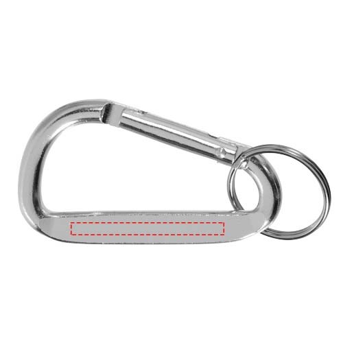 Praktischer Karabiner-Schlüsselanhänger mit auffälligem Metallic-Finish, der an einem Rucksack befestigt werden kann. Er ist aus leichtem und stabilem, zu 86% RCS-zertifiziertem, recyceltem Aluminium hergestellt. Der Recycled Claim Standard (RCS) prüft den Recyclinganteil eines Produkts über die gesamte Lieferkette hinweg. Der Karabiner ist nicht zum Klettern geeignet.