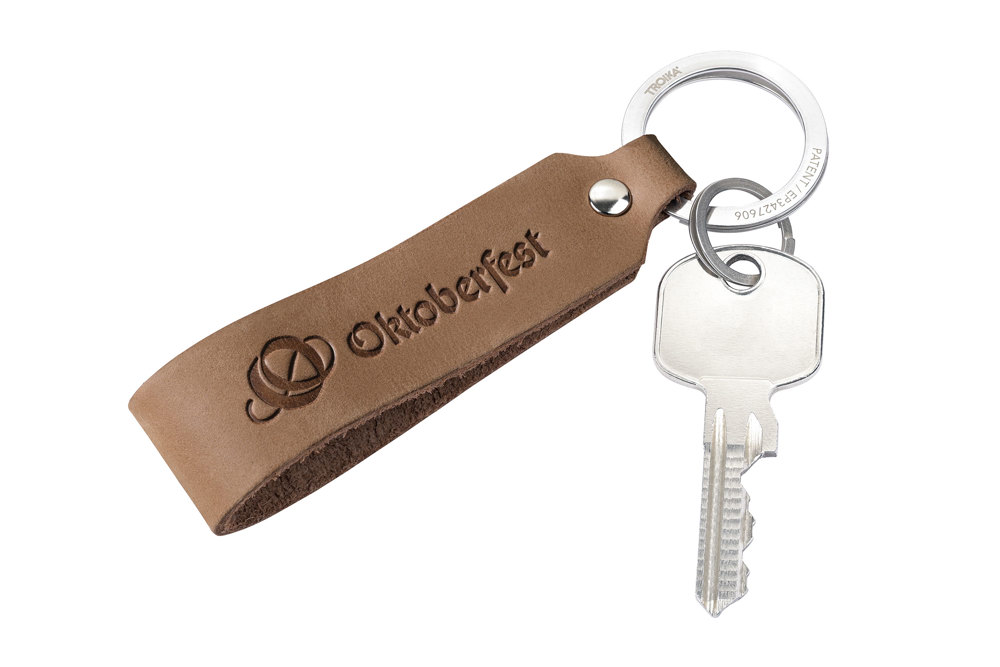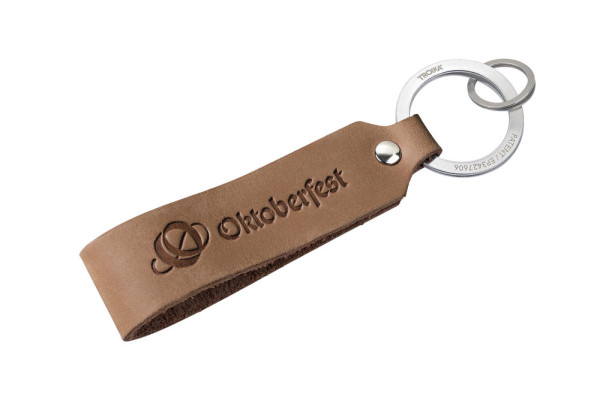 Schlüsselanhänger Lederschlaufe, Motiv: OKTOBERFEST, schnelles & einfaches Anbringen der Schlüssel dank patentiertem Öffnungsmechanismus (TROIKA NAIL GUARD), Leder (Made in Germany), braun