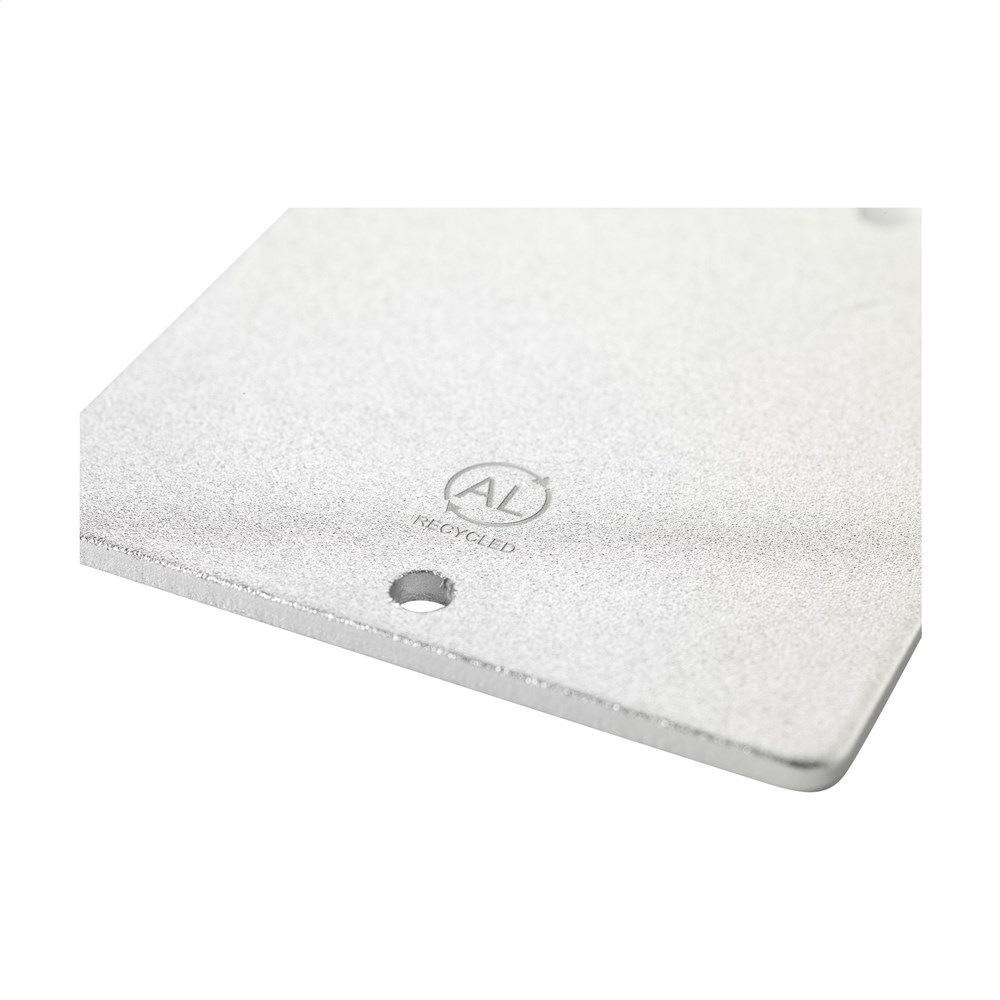 Flaschenöffner aus 100% recyceltem Aluminium. Der Öffner in praktischem Kreditkartenformat lässt sich mühelos an einem Schlüsselring befestigen. GRS-zertifiziert. Durch die Verwendung von recyceltem Aluminium werden bei der Herstellung dieses Produkts weniger neue Rohstoffe verwendet. Das bedeutet weniger Energieverbrauch und weniger Wasserverbrauch.