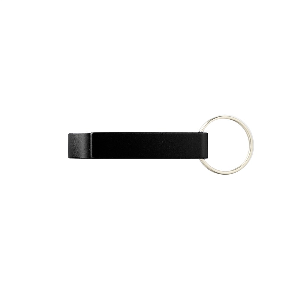 Schlüsselanhänger mit Öffner aus Aluminium.