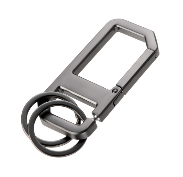 Schlüsselanhänger und Karabiner, mit praktischem "Klick-Verschluss", inklusive zwei Schlüsselringen, Metallguss, matt, gunmetal