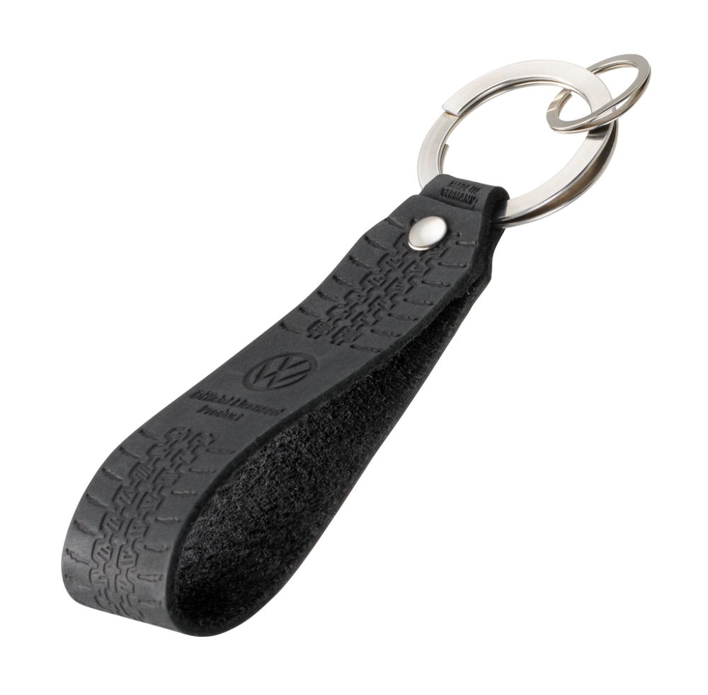 Schlüsselanhänger Lederschlaufe, Motiv: VW Golf Reifenprofil 1974, schnelles & einfaches Anbringen der Schlüssel dank patentiertem Öffnungsmechanismus (TROIKA NAIL GUARD), Leder (Made in Germany), schwarz