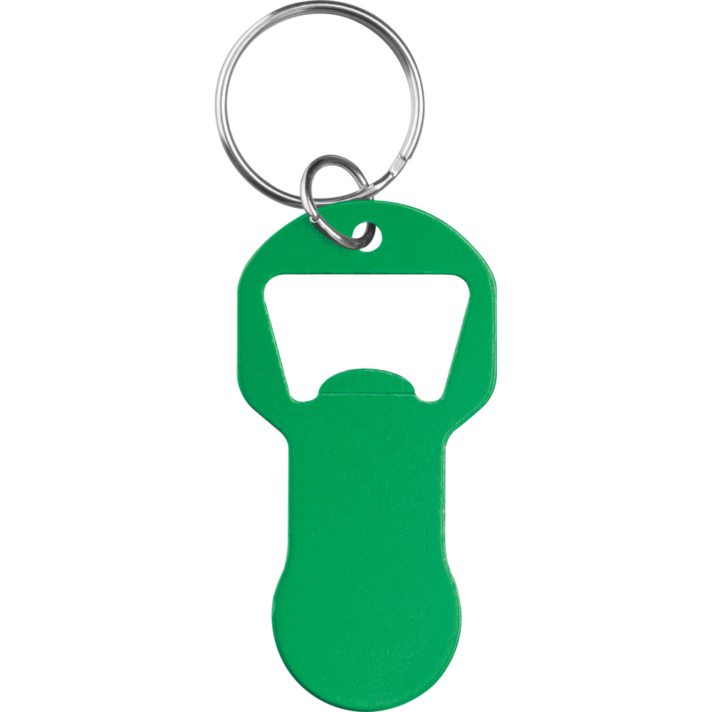 Recycelter Alu Schlüsselanhänger mit Einkaufswagenlöser und Flaschenöffner OLIVER