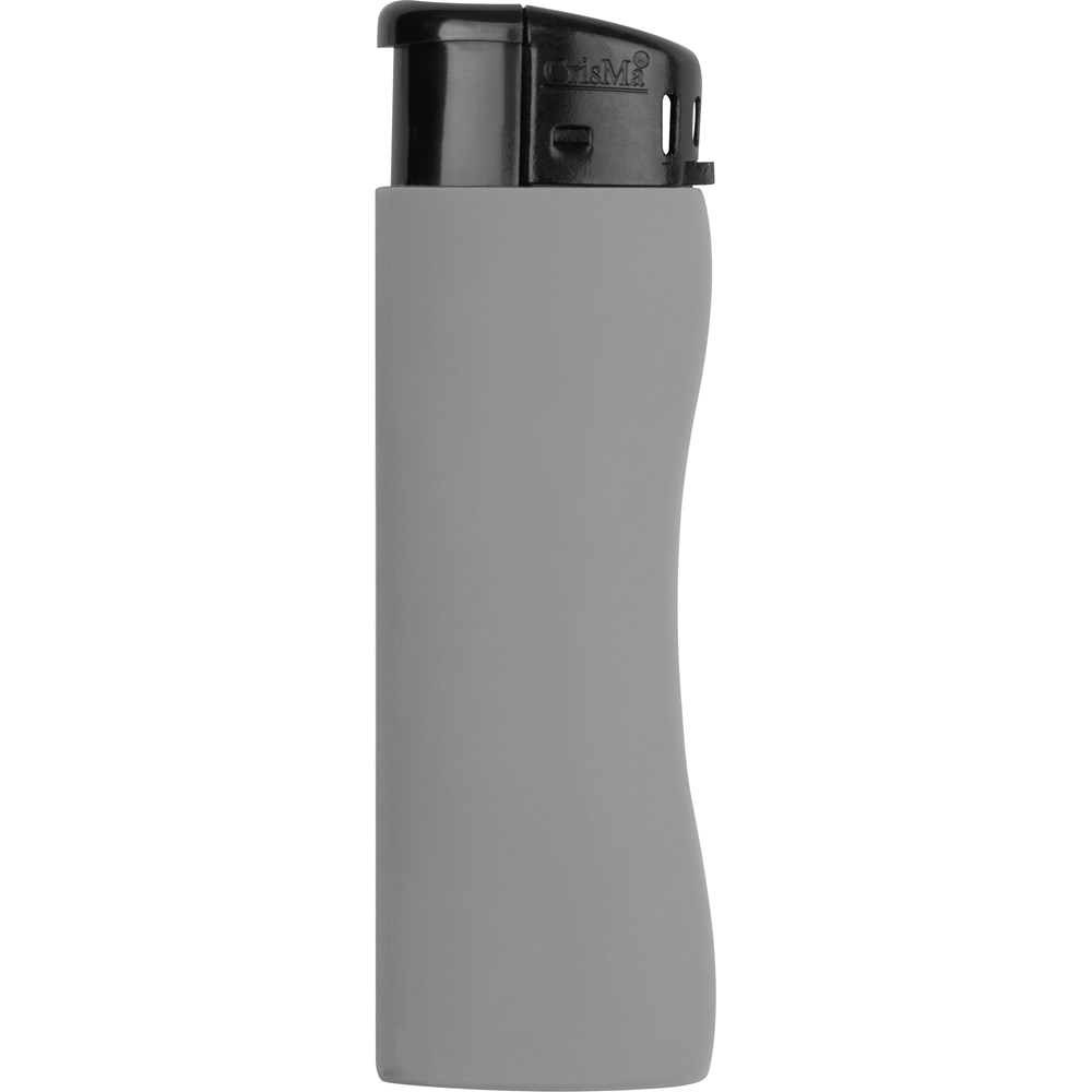 Ergonomisch geformtes Elektronikfeuerzeug mit gummierter Oberfläche, nachfüllbar. Die Flamme lässt sich stufenlos verstellen. Der Werbeaufdruck wird im Digitaldruck (mehrfarbig) für Rechtshänder lesbar angebracht.