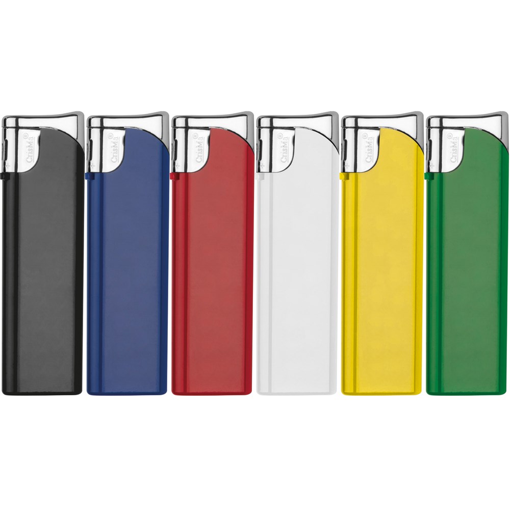 Nachfüllbares Elektronikfeuerzeug aus Kunststoff. Selbstverständlich verfügt dieses Modell über die vorgeschriebene Kindersicherung. Ihre Werbung drucken wir auf eine Seite des Feuerzeuges.