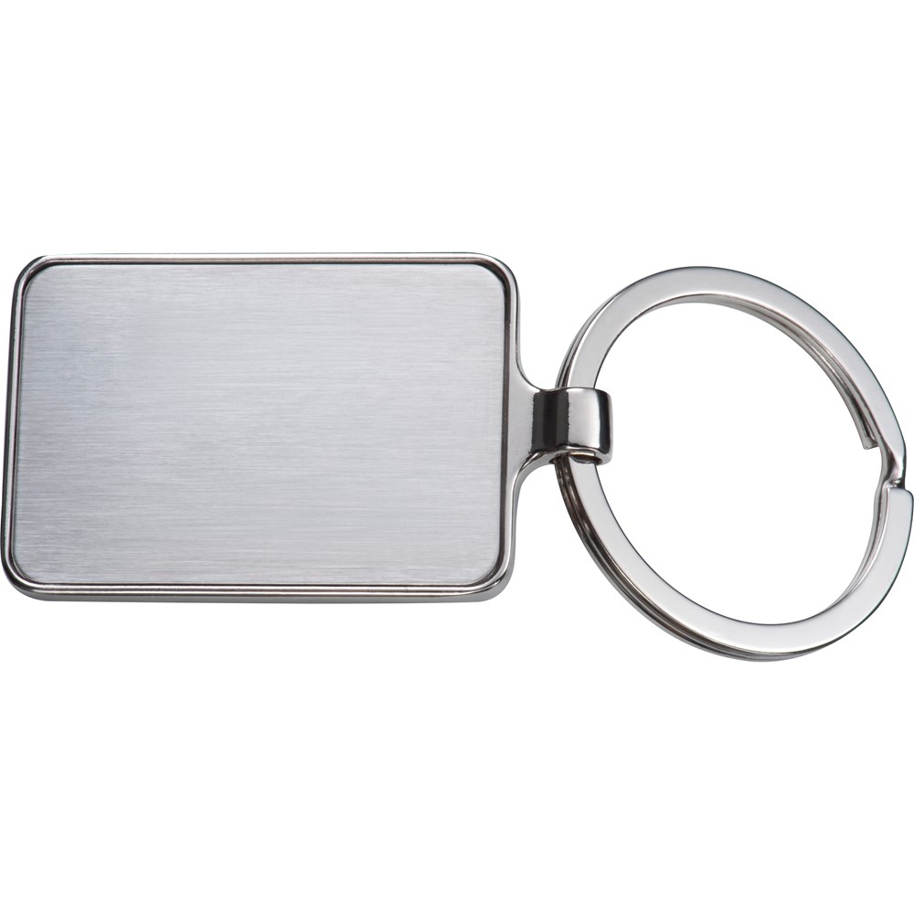 Schlüsselanhänger aus Metall mit mattgebürstetem Mittelstück. Ihre Werbung bringen wir mittels einer Lasergravur mittig an. Doming auf Anfrage möglich.