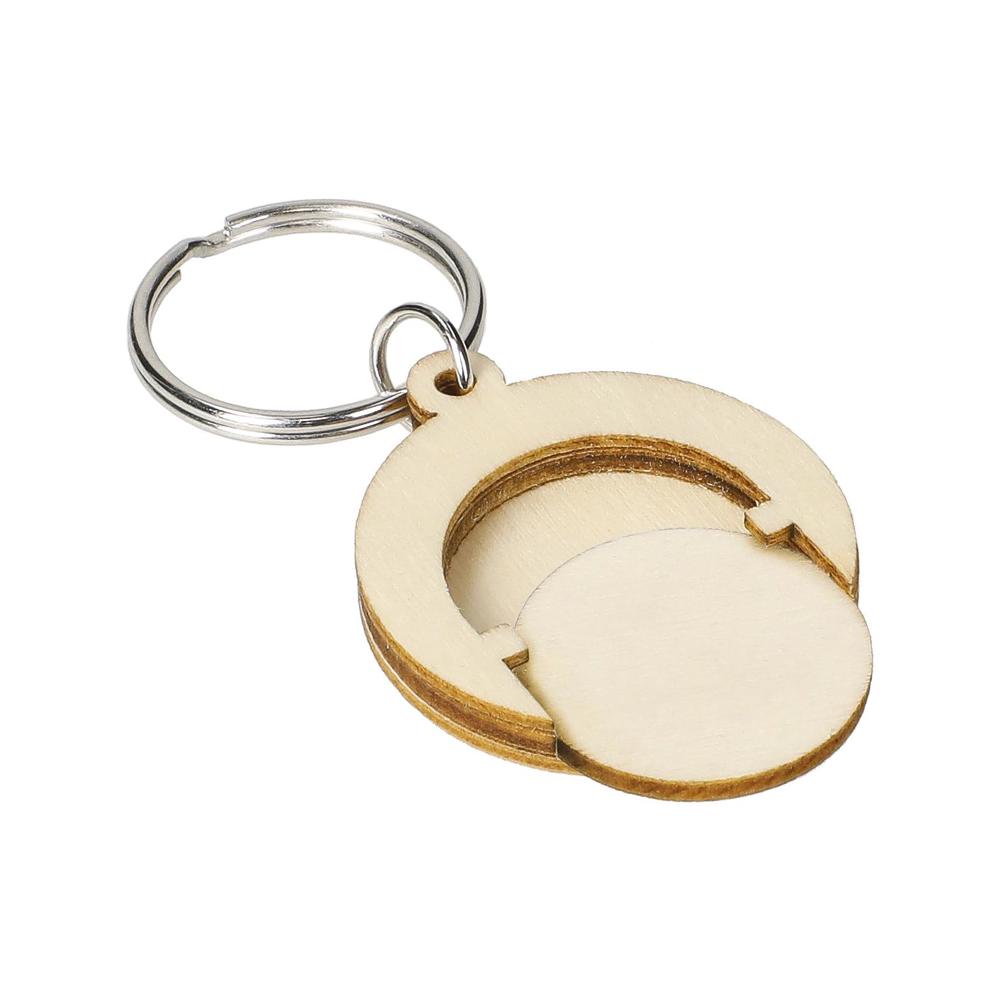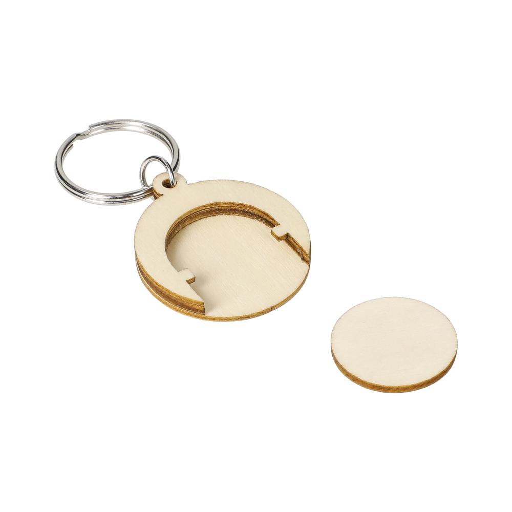 Runder Chip-Schlüsselanhänger inkl. Einkaufswagen-Chip und Metallschlüsselring. Für die besondere Optik sorgt die Fertigung des Anhängers aus Schichtholz.