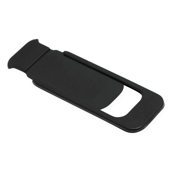 Webcam-Abdeckung HIDE: mit 2 Klebestreifen auf der Rückseite zur Befestigung am Laptop, leichtes Öffnen und Schließen durch Schieberegler