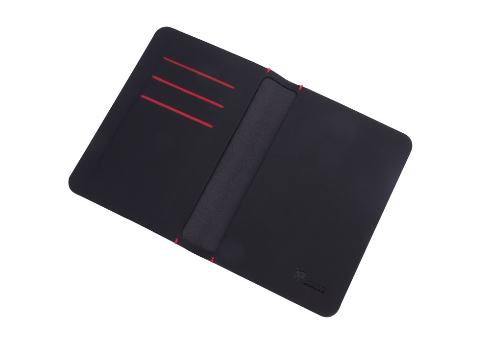 Reisepasshülle und Kreditkartenetui, 2 große Einsteckfächer für z. B. Reisepass, Boardingpass und Geldscheine, 3 Kartenfächer mit Ausleseschutz (für RFID Chips), Etui nahtlos verschweißt, Oberfläche antibakteriell, Kunstleder, rot/schwarz