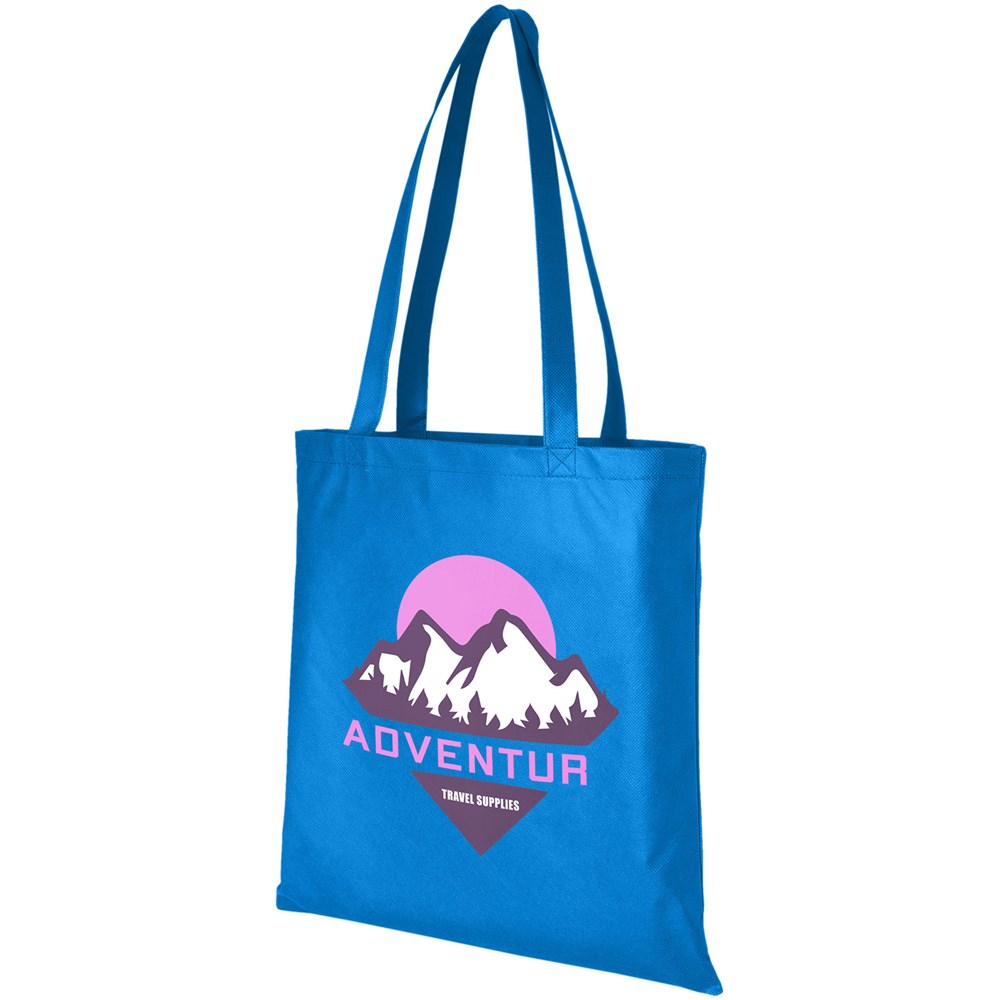 Sie brauchen eine gute Tasche für eine Messe oder Konferenz? Die große Non Woven Tasche Zeus ist die perfekte Wahl. Ihr schlankes Design macht sie zu einem eleganten Modell, das sich für den Transport von leichten Gegenständen wie einem Notebook und einem Stift eignet. Die Henkel sind 29 cm lang und können daher leicht über der Schulter getragen werden. Belastbar bis zu 5 kg.