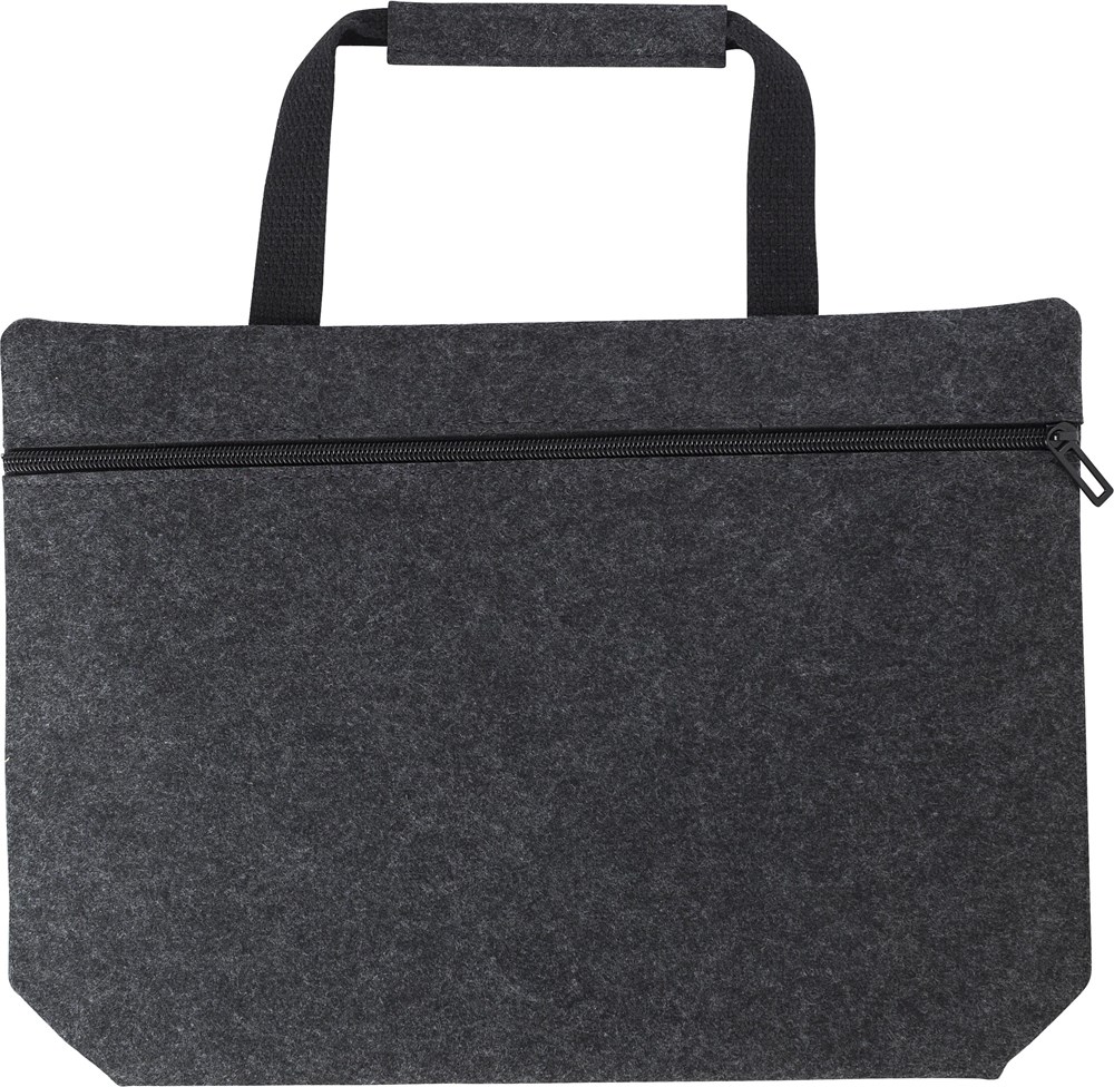 Dokumententasche aus rPET-Filz mit Laptop-Fach (15 Zoll), welches mit einem Reißverschluss und einem kurzen Griff verschlossen werden kann.