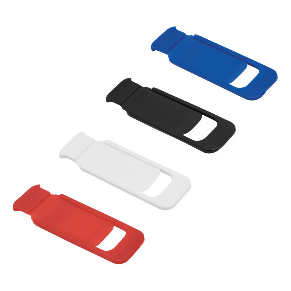 Webcam-Abdeckung HIDE: mit 2 Klebestreifen auf der Rückseite, zur Befestigung am Laptop, leichtes Öffnen und Schließen durch Schieberegler