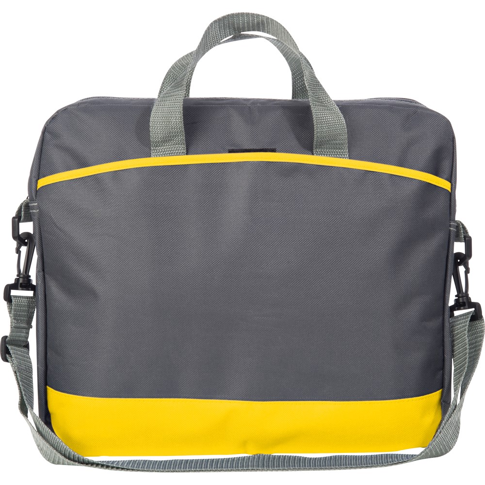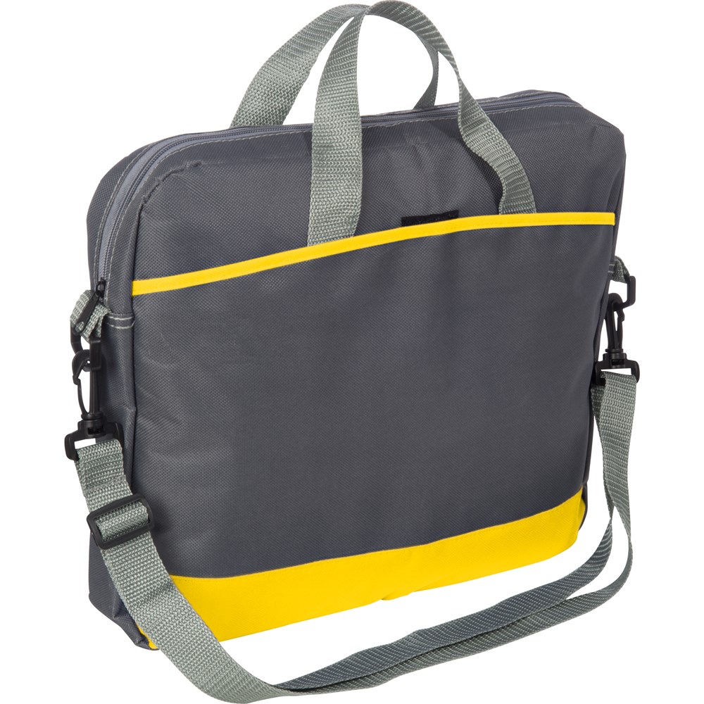 Graue Laptoptasche aus 600D Polyester mit knalligen Farbakzenten, einem geräumigen Innenfach... mehr