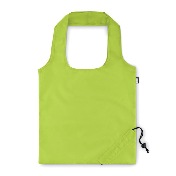 Faltbare Einkaufstasche mit kurzen Tragegriffen und Kordelzug. Der Artikel wird ungefaltet geliefert. 190T RPET.