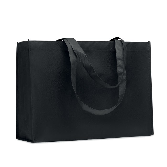 Einkaufs- oder Strandtasche aus RPET-Non Woven mit Seitenfalz und langen Tragegriffen. 80 g/m².