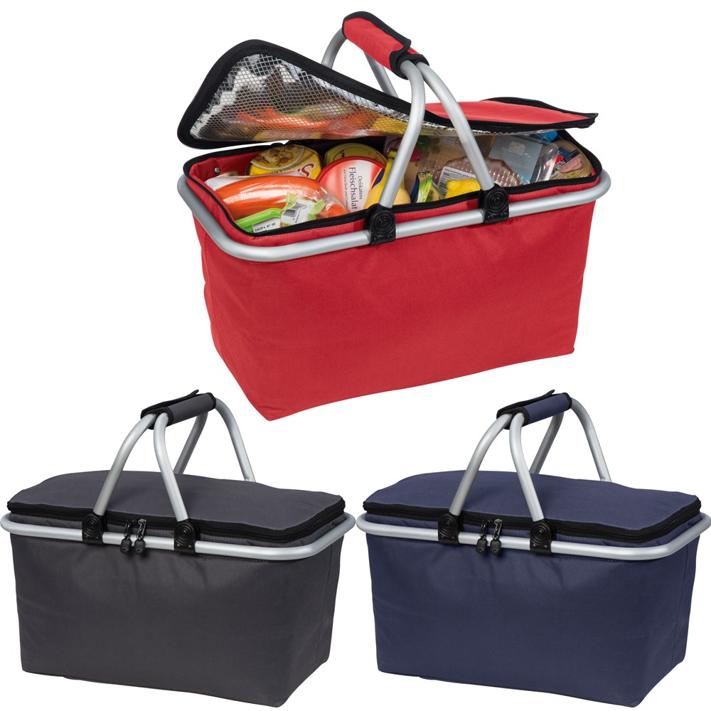 Hochwertige Materialien: Der Einkaufskorb besteht aus strapazierfähigem Polyester, einem Aluminiumgestänge und einer Isolierschicht, die Ihre Lebensmittel kühl hält.