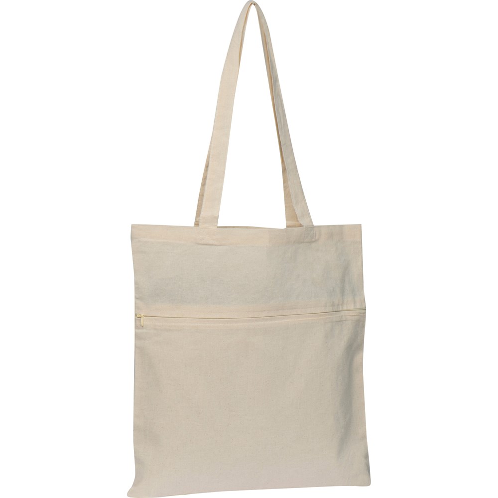 Unsere vielseitige Baumwolltasche bietet ein funktionales Design mit zusätzlichem Stauraum und praktischen Trageeigenschaften. Mit zertifizierter Qualität und einer langlebigen Verarbeitung ist sie die perfekte Wahl für den Alltag. Ihr Logo wird auf dem Vorfach der Tasche prominent präsentiert, um Ihre Marke optimal zu bewerben.